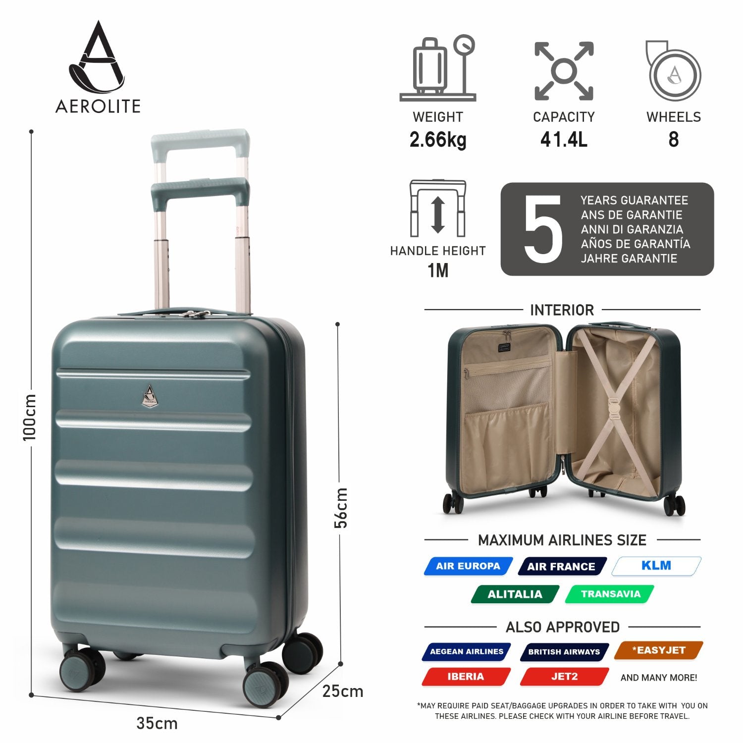 Aerolite 55x35x25cm Hard Shell Carry On Hand Cabin Luggage Suitcase with 4 Spinner Wheels & TSA Lock – Max Size Cabin Bag for Air Europa, Air France, ITA Airways, KLM & Transavia - Forest Green