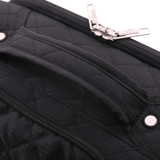 - LUXURY QUILTED EXTERIOR – The bag features a luxury quilted exterior, made of tough high-quality rip-resistant polyester for durability and lightness. It also features a mounting strap on the back, allowing you to mount the bag over the trolley handle of your hold luggage or larger cabin suitcase.