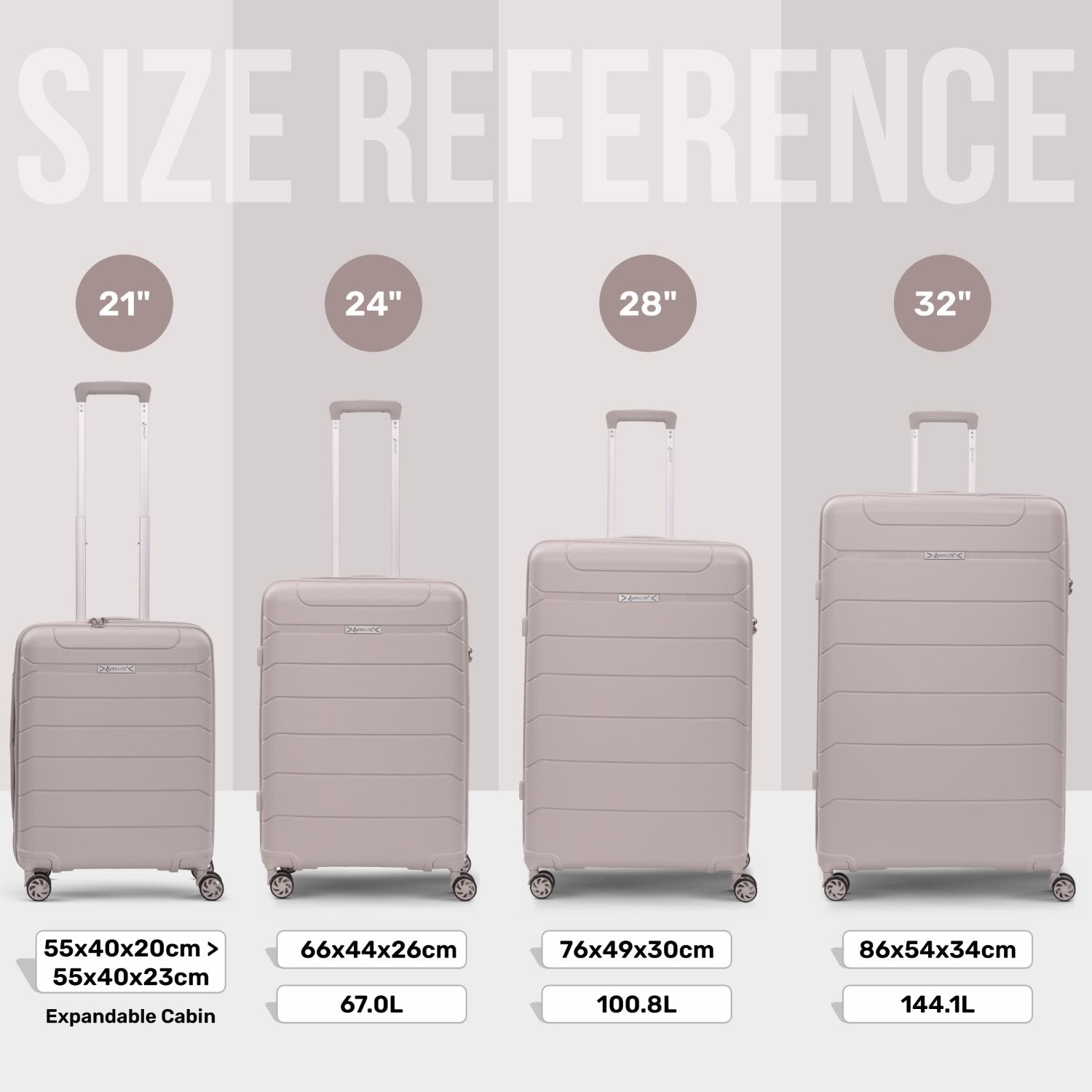 Aerolite Premium PP 4 Piece Hard Shell 4 Dual Wheel Spinner Travel Luggage Suitcase Set , Expandable Cabin + Medium + Large + Extra Large - Cream