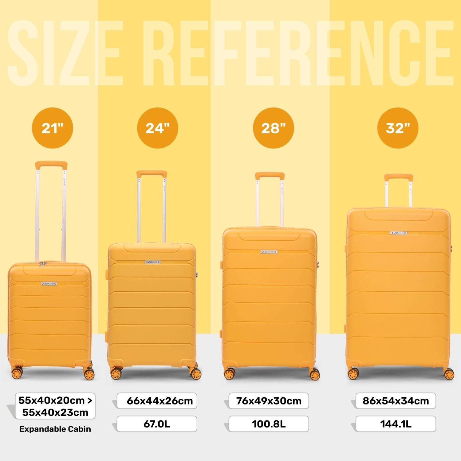 Aerolite Premium PP 4 Piece Hard Shell 4 Dual Wheel Spinner Travel Luggage Suitcase Set , Expandable Cabin + Medium + Large + Extra Large - Mango