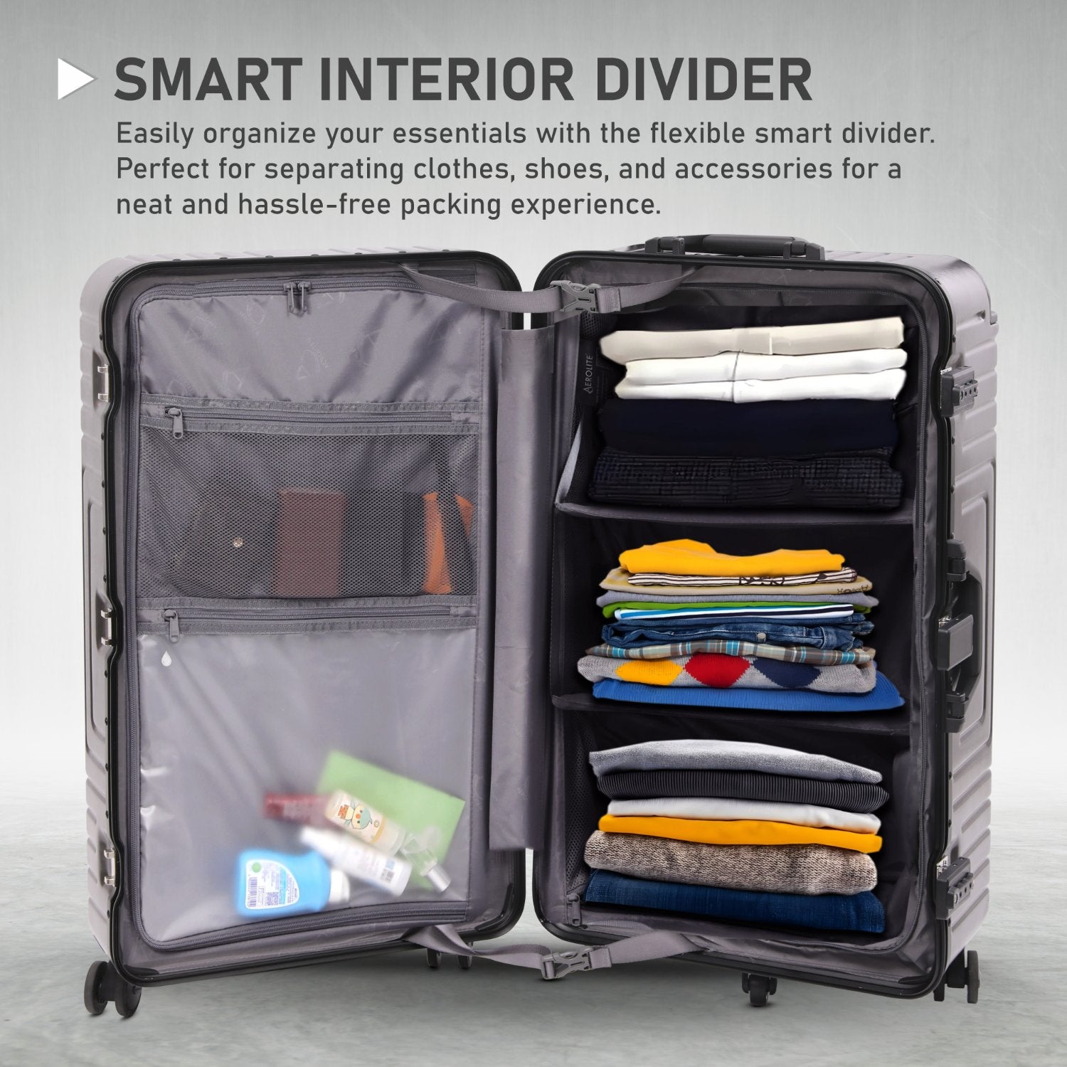 Features adjustable dividers, zippered compartments, and a foldable shelf system, keeping your clothes and essentials neatly packed.