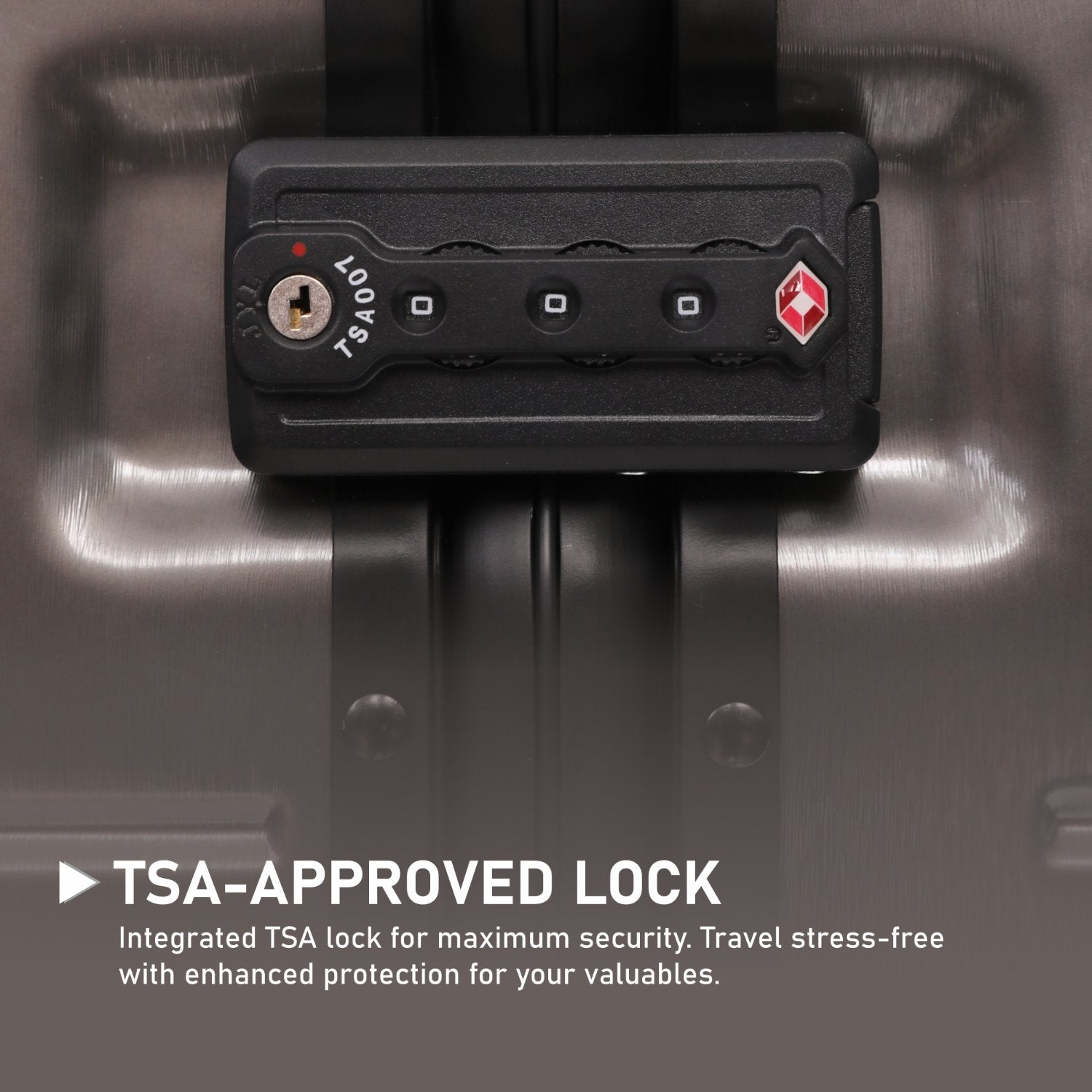Experience superior security with a high-end latch-lock closure system, eliminating the need for zippers. TSA-approved locks provide peace of mind for hassle-free travel.