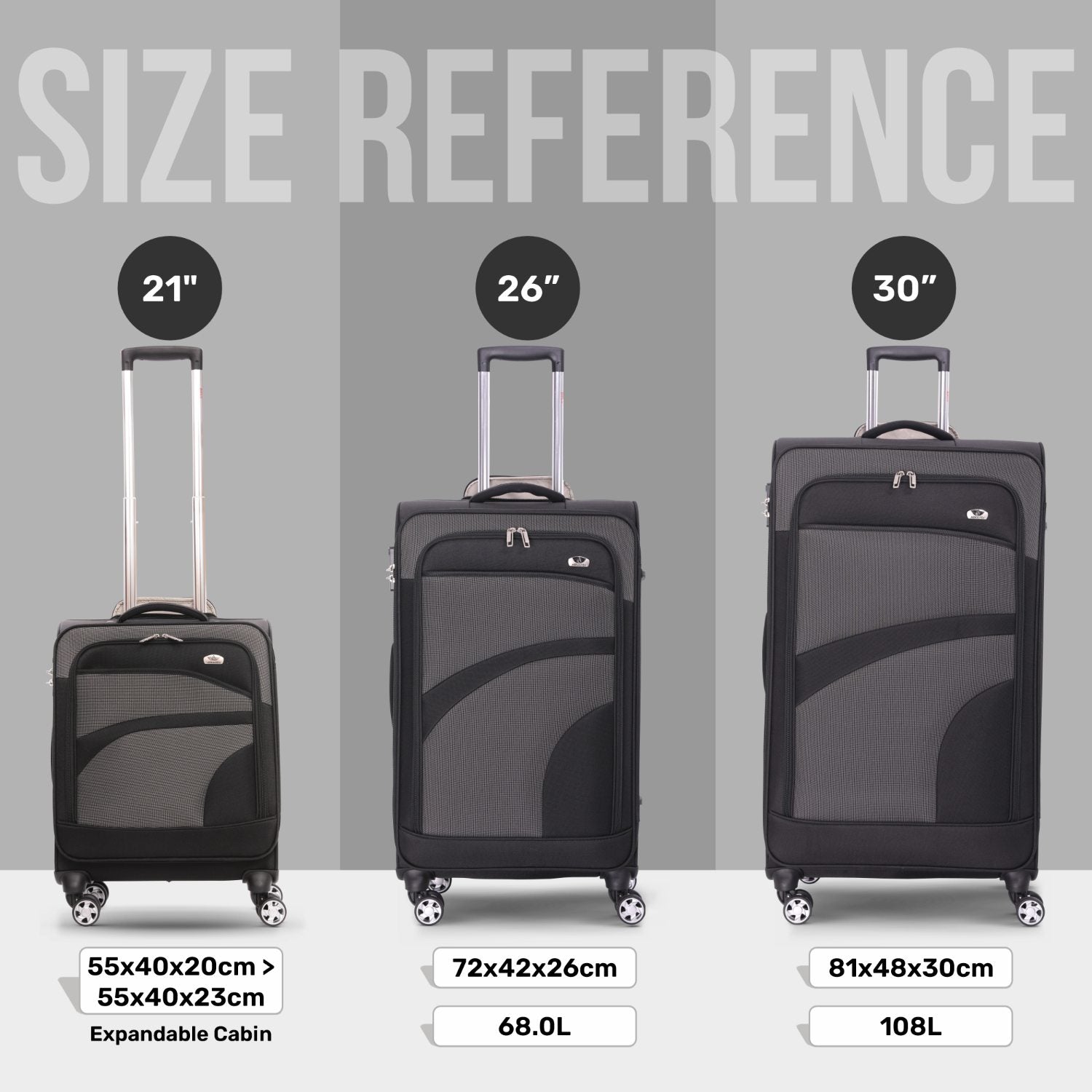 Aerolite 3 Piece Super Lightweight 4 Wheels Soft Shell Cabin & Hold Luggage Set of 3, (Cabin 21", Medium 26", Large 30")