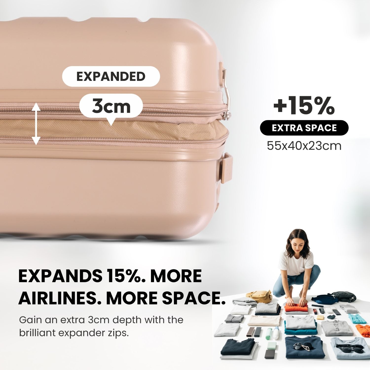 - Expandable Design: Zip-to-expand feature allows you to increase depth by 3cm, giving you 6L more packing space while remaining within airline limits.