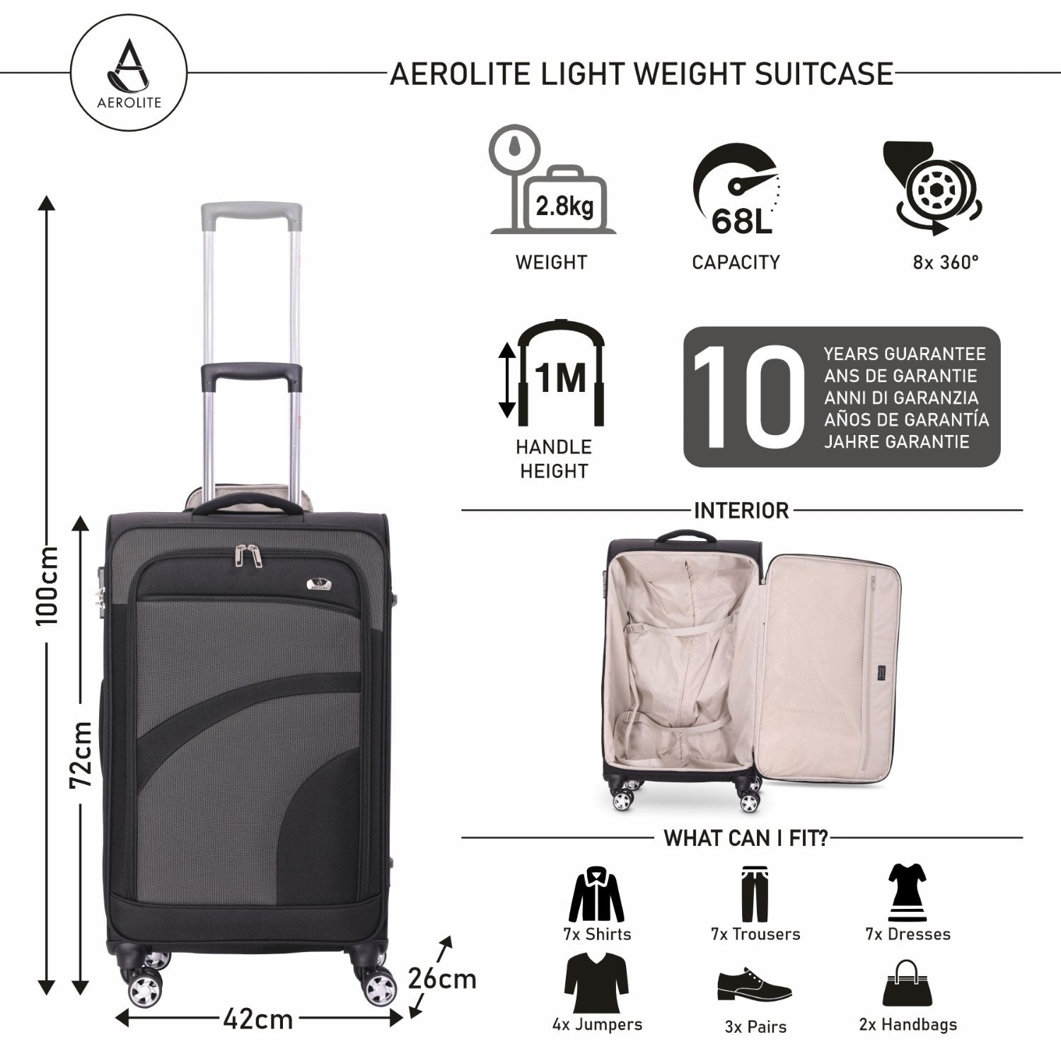 Aerolite 26" Super Lightweight Soft Shell Medium Checked In Hold Luggage Suitcase with 8 Wheels, 67L Capacity